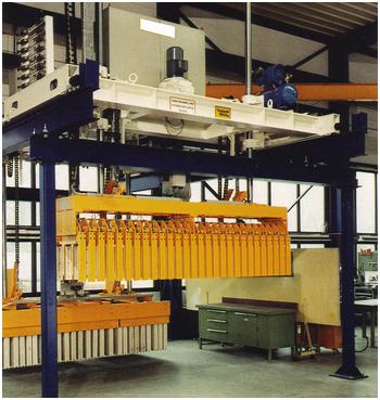 Після завершення процесу сушіння та виходу з сушила, плити перевантажуються захватним грейфером з вагонеток на роли-